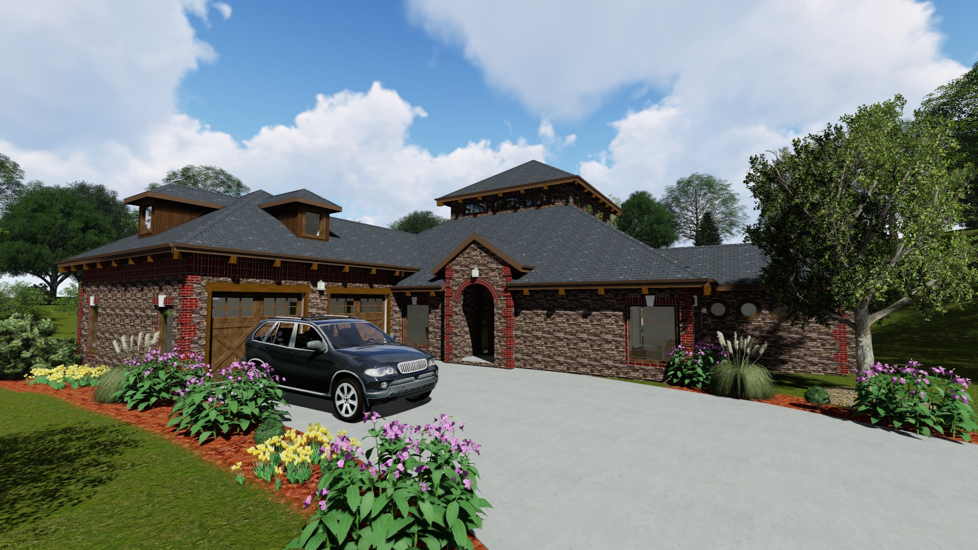 Timberframe hybrid home. Featuring a center Timberframe structure with 2x conventionally framed walls, and heavy timber rafters in the wings.