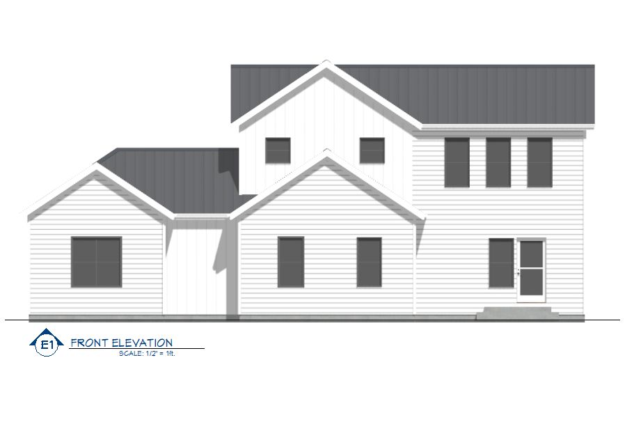 Front elevation of modern farmhouse
