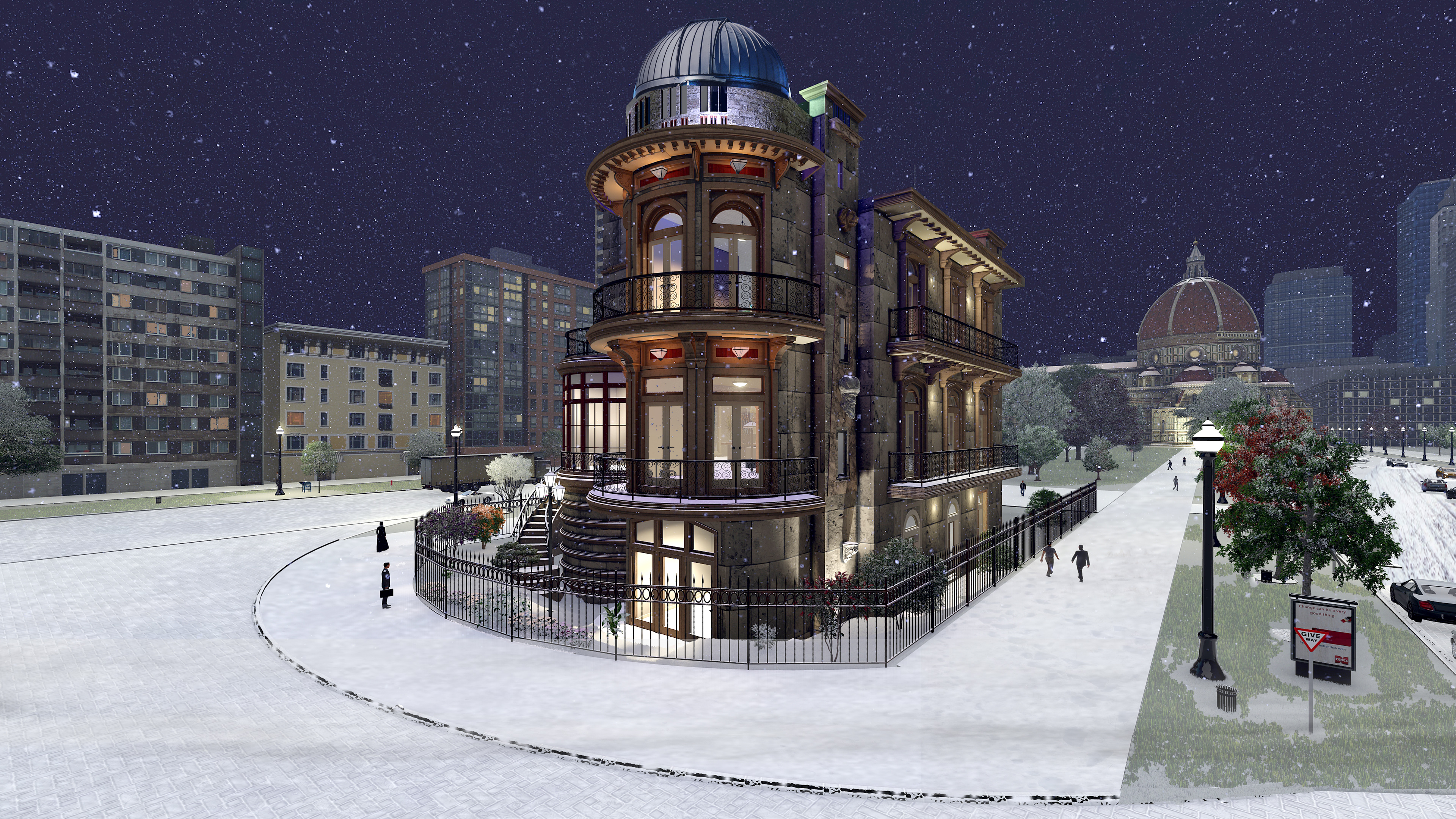 3d rendering of a Oberservatory in Romania in the snow