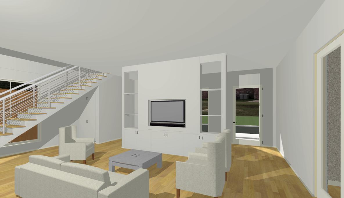 This is my latest project. I was hired by the homeowner to create renderings of the interior so that his wife would get a handle on what the spaces would look like. I think that it has been very effective for her. It also gave me a great appreciation for the precision and symmetry of this contemporary design.