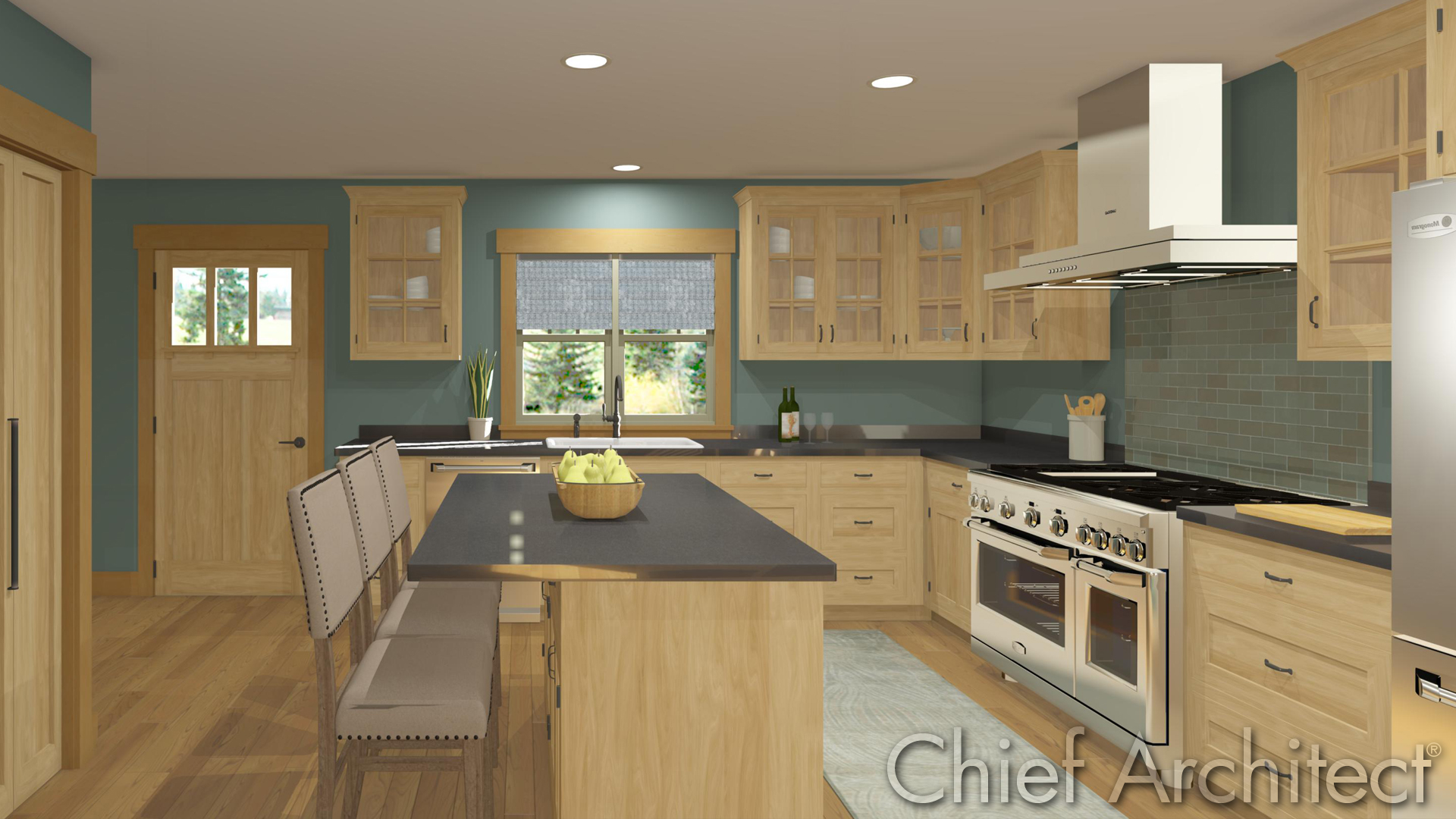 These green walls begged for green hand glazed tiles behind the range. To create them, we used the custom material maker we've shared with our ChiefTalk friends. This tool offers an option to generate your own custom materials, complete with normal maps, that you can import and paint onto your own designs.