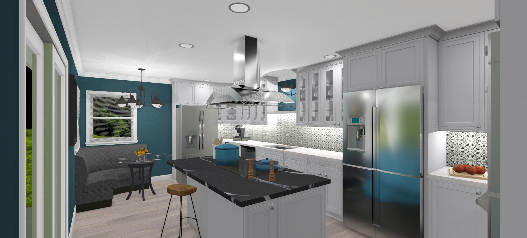 This is a relatively small home built in the '70's with an 8' plate. The Owners wanted a new Kitchen in the space of the orig. Master Bedroom and Bath. That space is only 12' wide and together about 23' long. They raised 3 kids in the home and now are empty nesters. They needed the big kitchen when their kids were living with them and still want it even now. Next year they hope to remove the Sliding Glass Doors build a family room addition that will connect to the kitchen. Great People - Fun Project!
