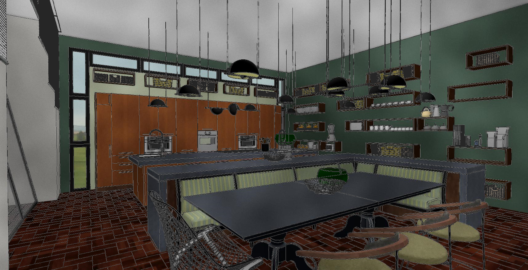 Conceptional Kitchen Design: Double Island Kitchen With Diner Sofa Based Breakfast-nook Software: Chief Architect Home Designer Pro 2019 & 3Ds Max
