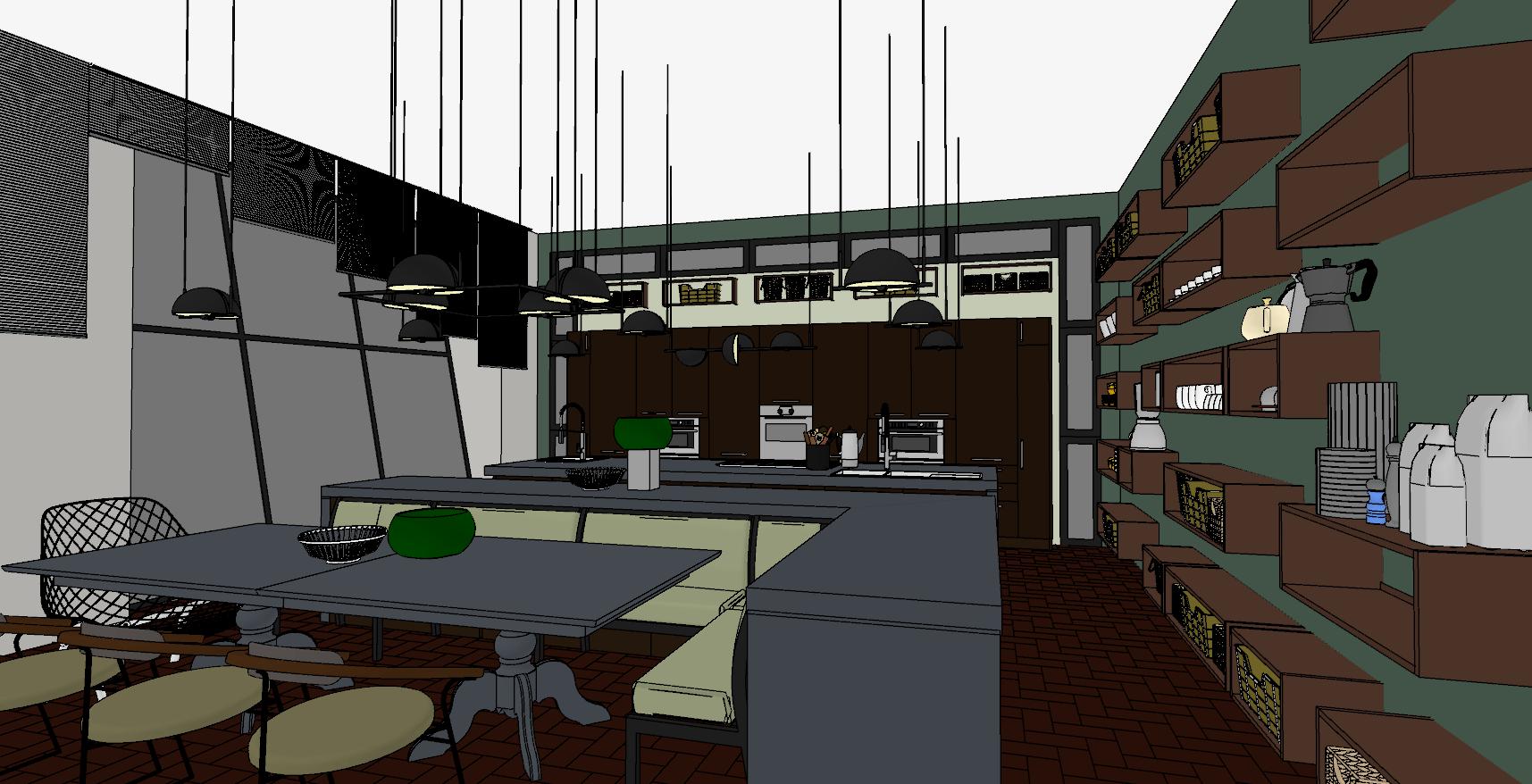 Conceptional Kitchen Design: Double Island Kitchen With Diner Sofa Based Breakfast-nook Software: Chief Architect Home Designer Pro 2019 & 3Ds Max