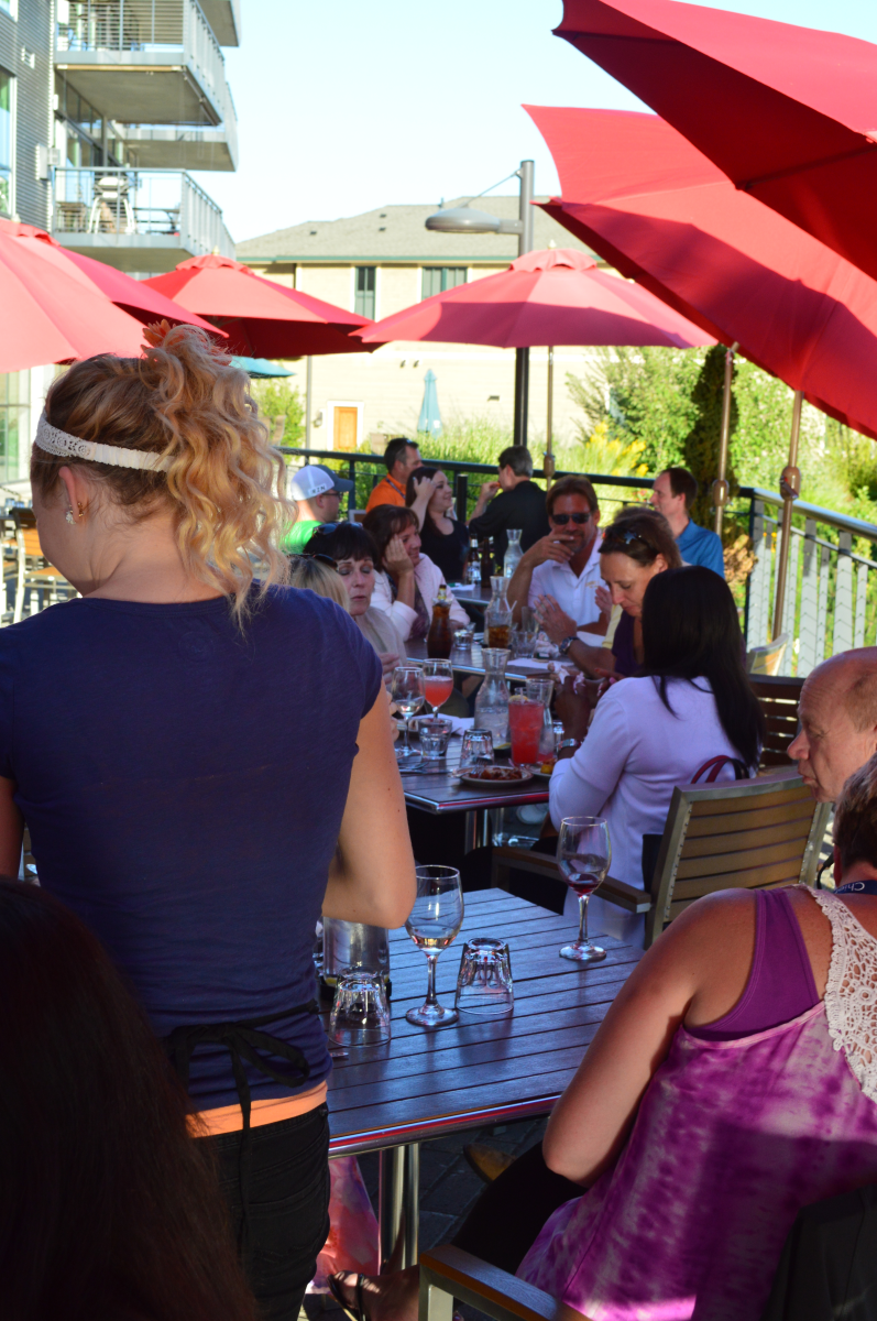 Enjoying appetizers and drinks.