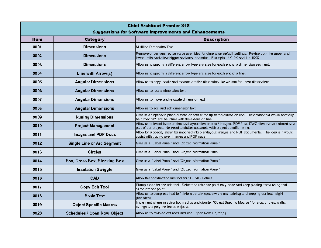 My current list of proposed program improvements and enhancements for Chief Architect X18...
