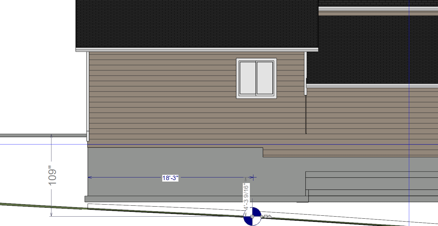 SHCanada2 Posted 7 hours ago Share Posted 7 hours ago (edited) 8 minutes ago, LeeDrafter said: I'm trying to mimic what you showed dimensioning to those terrain elevation points in an elevation view I measured on your plot plan from the back of the house to your elevation point on the side, then on the elevation, I drew a dimension from left to right to where that was. Then I just dimensioned from the patio down using my pointer cross hairs(where I thought it would be on the terrain) and CA dropped a marker. I then changed the marker to a level line so it was obvious and moved it to the amount away from the wall (that I measured from the plan view) to the point where it intersected the terrain, and moved it up and down a little until it was in the centre. the other way to do it is to put in a small terrain object where your elevation point is, and ensure the layer is on in plan and elevation view Edited 7 hours ago by SHCanada2 1 Link to comment Share on other sites More sharing options...