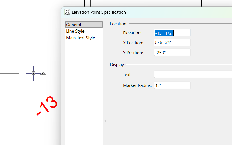 LeeDrafter Posted 7 hours ago Author Share Posted 7 hours ago 13 minutes ago, SHCanada2 said: I measured on your plot plan from the back of the house to your elevation point on the side, then on the elevation, I drew a dimension from left to right to where that was. Then I just dimensioned from the patio down using my pointer cross hairs(where I thought it would be on the terrain) and CA dropped a marker. I then changed the marker to a level line so it was obvious and moved it to the amount away from the wall (that I measured from the plan view) to the point where it intersected the terrain, and moved it up and down a little until it was in the centre. the other way to do it is to put in a small terrain object where your elevation point is, and ensure the layer is on in plan and elevation view Thank you! good to know there's no way to see the actual elevation point in camera view. Link to comment Share on other sites More sharing options...