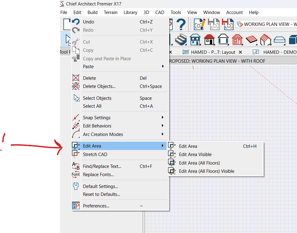 2. Select Edit (from top task bar) and select "Edit Area / Edit Area (All Floors)