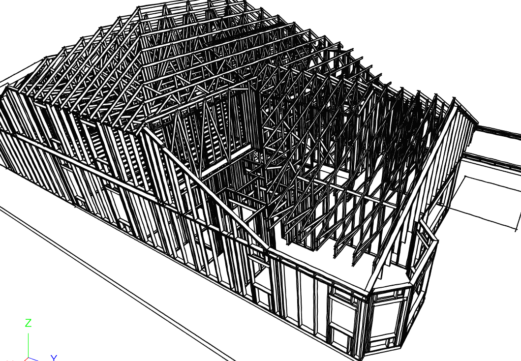 GeneDavis Posted 3 hours ago Share Posted 3 hours ago I am trying to do a workout on a production-built plan that has a few modest changes, and the workout is to get all the framing modeled, to assess feasibility. It's a challenge. We've no idea how this roof frames, but it's very likely a hybrid arrangement of some stick framing and trusses, so I've tried that. If you open the plan file to see where things sit right now, you can see that in plan view upper right, that trusses won't generate, and I cannot figure out why. This is my first time attempting a plan attachment from the X17 project managment setup, and I've exported a .caproj file, the export producing a zipped file, and in the project only the plan file is included. See if this works. https://drive.google.com/file/d/1yCv_8U-rSPt1Ub3DviHKXOuwgZuTz_Dg/view?usp=drive_link In the screencap attached here, I have aimed the camera at the part of the roof that won't frame with trusses, assuredly so because I have not done room def properly, but I am stuck, so here it is. Link to comment Share on other sites More sharing options...