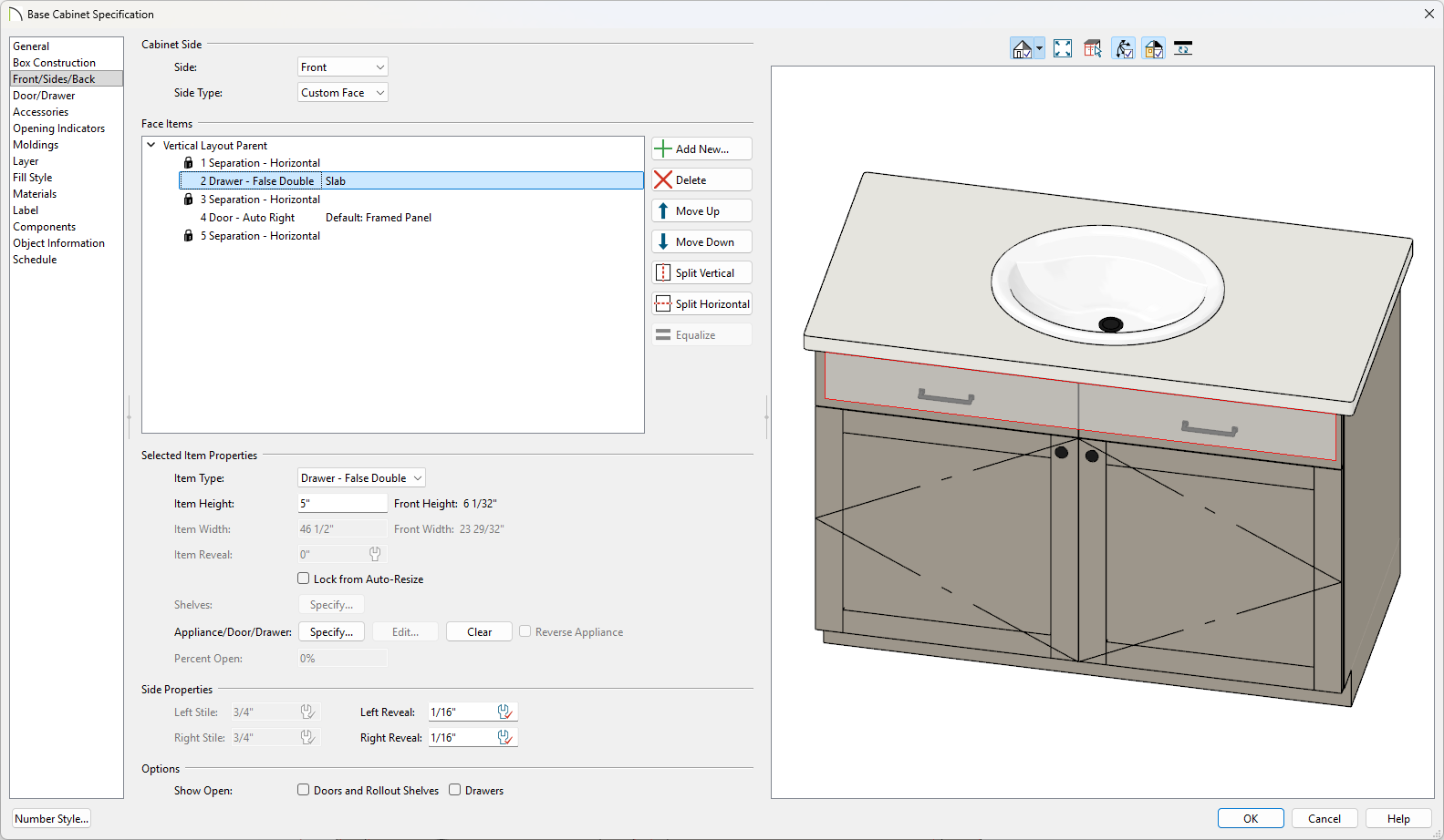 TJDDesigns Posted 4 hours ago Share Posted 4 hours ago Hi All, I have searched everywhere for a solution to this sink issue. I have a vanity with a separation showing in the middle of the sink because of having (2) false panels instead of (1). How can I have a separation of the false panels, just on the face, but not have it cut through the sink? I am attaching (2) images for reference. (X17) Thanks in advance! Link to comment Share on other sites More sharing options...