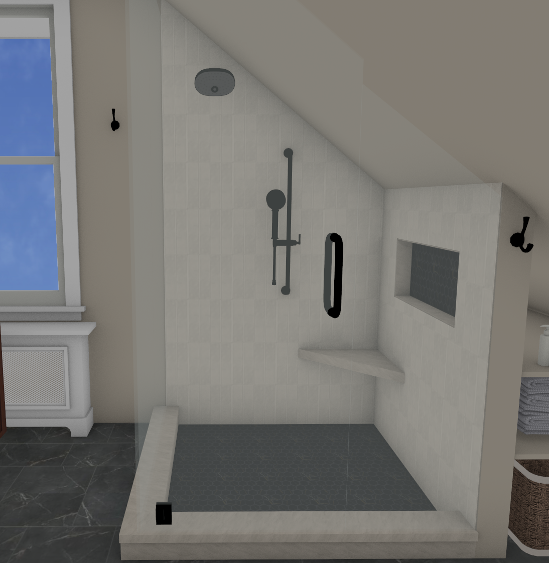 KBEDesign Posted 4 hours ago Share Posted 4 hours ago I am working on a bathroom rendering that has a sloped shower in which the ceiling will be tiled. In order to create the slope, I used a ceiling plane. When I tile it, it tiles the whole plane instead of just the shower section. Is there a way to specify where you want the material, similar to wall/floor material region but on the ceiling? Pic for reference. Link to comment Share on other sites More sharing options...